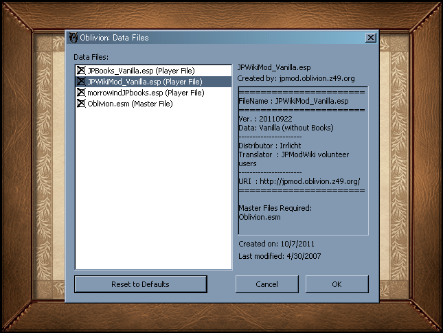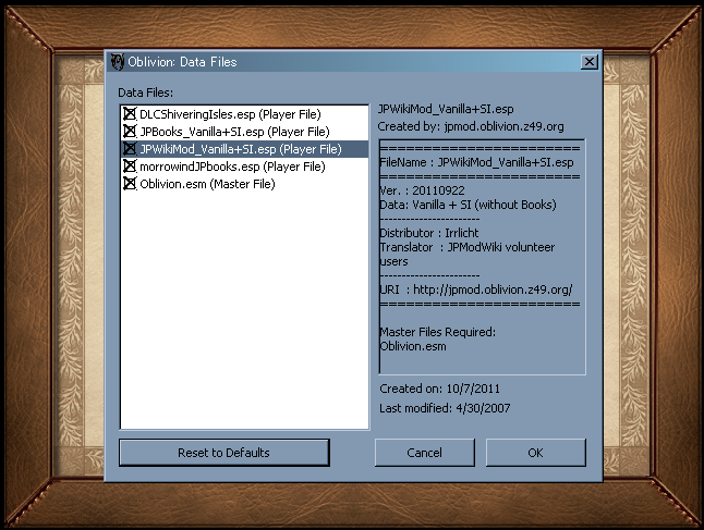 JPWikiMod:JPWikiMod_Vanilla.esp