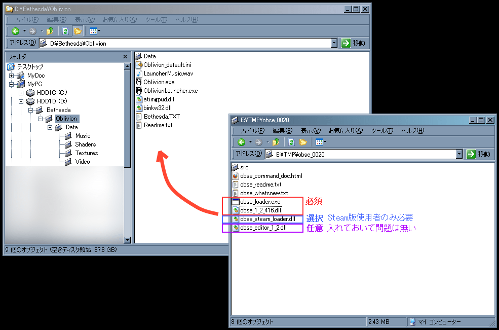 • obse_1_2_416.dllobse_loader.exe を oblivion.exe と同じディレクトリにコピーします